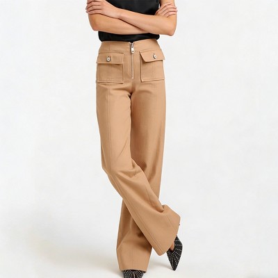 Women's High Waist Wide Leg Trousers Zipper Fly Pocket Casual Work Pants