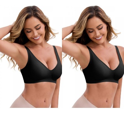 INSPIRE CHIC Women's Deep V-Neck Wireless Adjustable Spaghetti Straps Push-Up Seamless Soft Everyday Bras 2 Packs