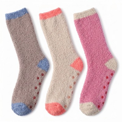 Tipi Toe Women's 3-Pairs Soft Fuzzy Solid Geometric Stripe Pattern Cozy Anti-Skid Crew Comfy Socks
