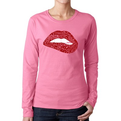 LA Pop Art Brooklyn Lips - Women's Word Art Long Sleeve T-Shirt Pink 3X Large