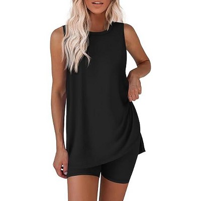 Ekouaer Biker Short Sets Womens 2 Piece Lounge Set Summer Matching Outfits Sleeveless Loungewear clothing