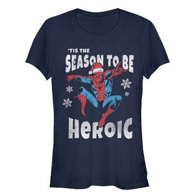 Juniors Womens Marvel Christmas Spider-Man Heroic Season T-Shirt