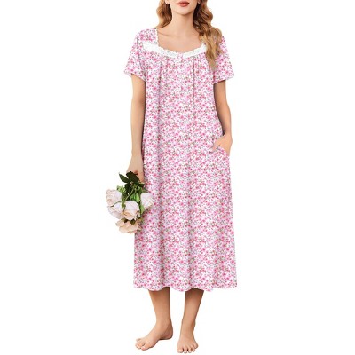 Ekouaer Ladies Long Nightgowns Short Sleeve Breathable Sleepwear Full Length Sleepshirt with Pockets