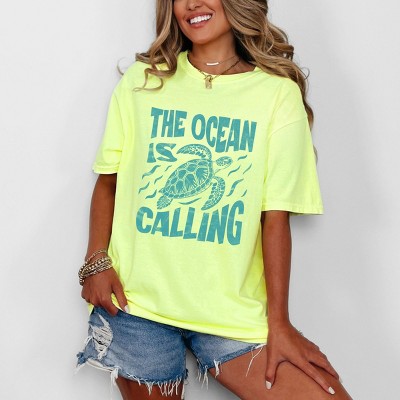 The Ocean Is Calling Turtle - Women's Garment Dyed Graphic T-Shirt
