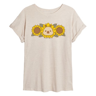 Women's - CapyFun - Sunflower Oversized Graphic T-Shirt