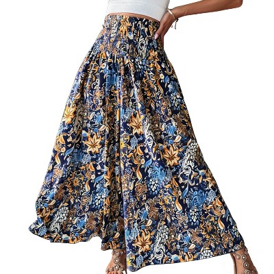 Women's High Waist Wide Leg Pants - Flowy Bohemian Palazzo Trousers with Pockets