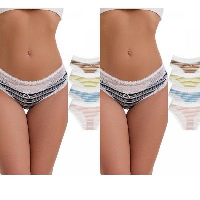 INSPIRE CHIC Women's Mid-Rise Cotton Lace Trim Elastic Comfortable Striped Briefs 10 Packs