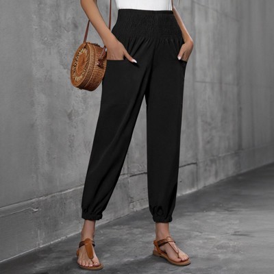 Women's High Waisted Joggers Pants Smocked Elastic Waist with Pockets Casual Pants