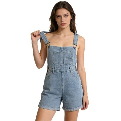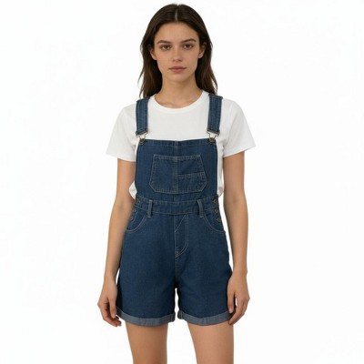 Women's Denim Overall Shorts Adjustable Strap Bib Shortalls Casual Summer Jumpsuit with Pockets