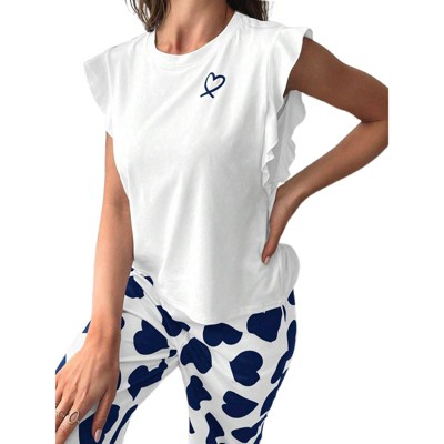 Ekouaer Pajama for Women Set 2 Piece Ruffle Pjs Soft Tank Top and Shorts Sleepwear Set Bridal Pajama Set for Women
