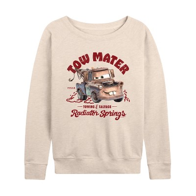 Women's - Cars - Tow Mater Towing Lightweight French Terry Wide Neck Long Sleeve Graphic Shirt