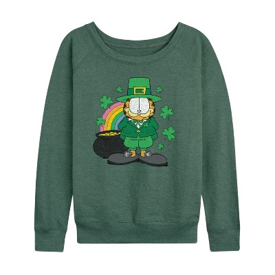 Women's - Garfield - Rainbow Shamrocks Lightweight French Terry Wide Neck Long Sleeve Graphic Shirt