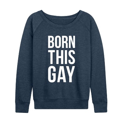 Women's - Instant Message - Born This Gay Lightweight French Terry Wide Neck Long Sleeve Graphic Shirt
