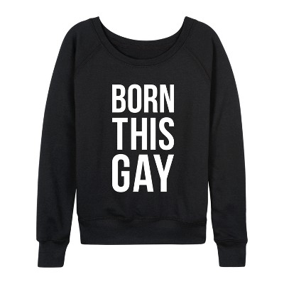 Women's - Instant Message - Born This Gay Lightweight French Terry Wide Neck Long Sleeve Graphic Shirt