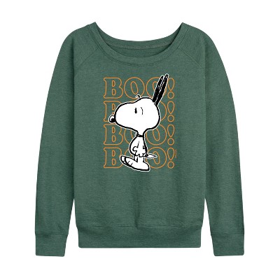 Women's - Peanuts - Snoopy Dance Lightweight French Terry Wide Neck Long Sleeve Graphic Shirt