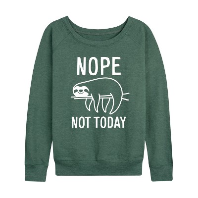 Women's - Instant Message - Nope Not Today Sloth Lightweight French Terry Wide Neck Long Sleeve Graphic Shirt