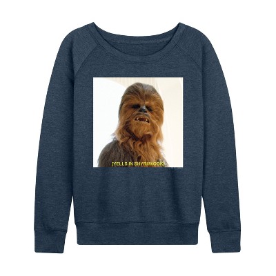 Women's - Star Wars - Chewbacca Subtitled Lightweight French Terry Wide Neck Long Sleeve Graphic Shirt