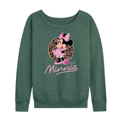 Women's - Disney - Minnie Leopard Print Lightweight French Terry Wide Neck Long Sleeve Graphic Shirt