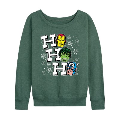 Women's - Marvel - Ho Ho Ho Avengers Lightweight French Terry Wide Neck Long Sleeve Graphic Shirt
