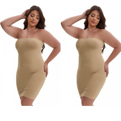 INSPIRE CHIC Women's Push-Up Strapless Bandeau Shaper Tummy Control Butt-Lifting Elastic Slim Fit Full Slip 2 Packs