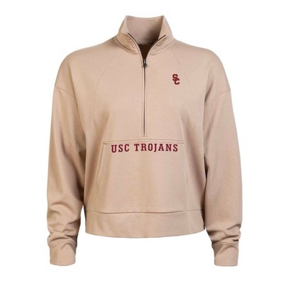 NCAA USC Trojans Women's Off White 3/4 Zip Sweatshirt