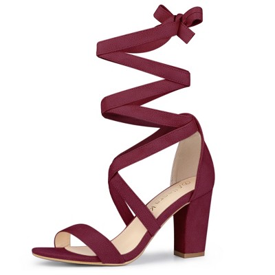 BLISSFUL STEP Women's Crisscross Lace Up Mid Block Heels Sandals