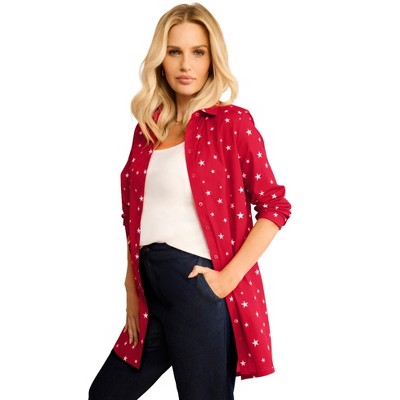 Roaman's Kate Long-Sleeve Crisp Cotton-Blend Button-Front Tunic