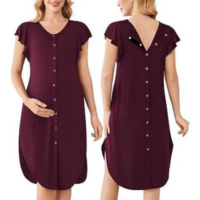 Ekouaer Labor and Delivery Gown 3 in 1 Nursing/Hospital/Breastfeeding/Maternity Flying Short Sleeve Nightgown with Button