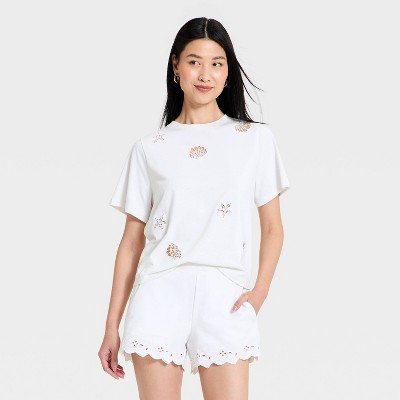 Women's Short Sleeve Round Neck Crochet T-Shirt - A New Day™ White
