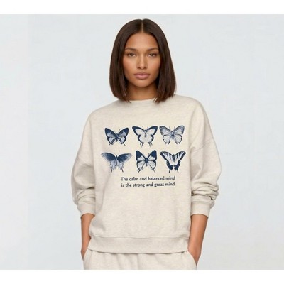 Grayson Threads - Women's Grey Butterfly Blues Glitter Ink Crewneck Sweatshirt