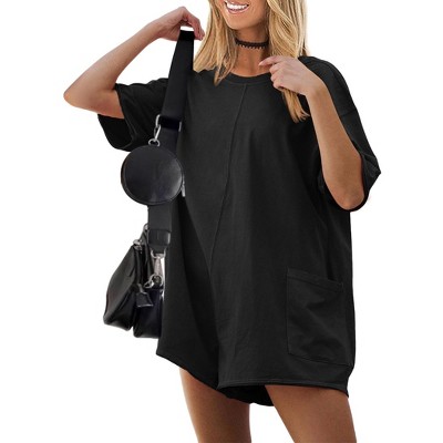 Ekouaer Summer Rompers for Women Short Sleeve Oversized T-shirt Romper Reversible Baggy Jumpsuit Outfits with Pockets