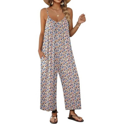 Ekouaer Womens Summer Casual Sleeveless Rompers Floral Loose Shorts Overalls Adjustable Boho Jumpsuits with Pockets