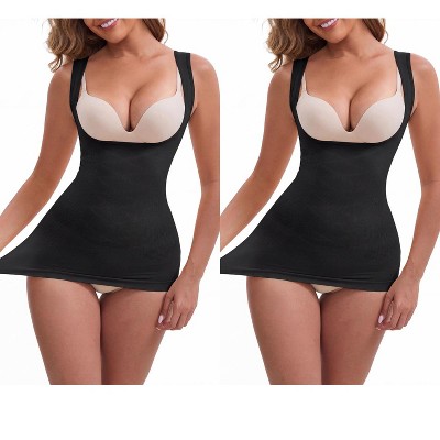 INSPIRE CHIC Women's Square Neck U-Back Unpadded Wide Straps Shaper Tank Top Tummy Control Push-Up Slimming Waist Vest 2 Packs