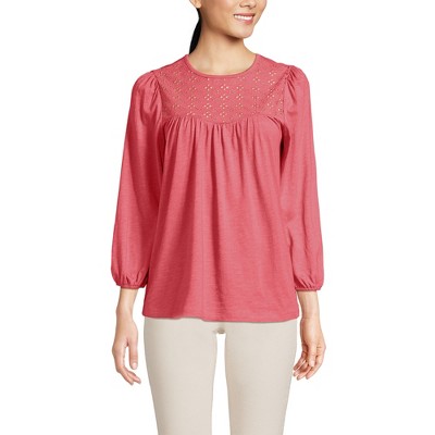 Lands' End Women's 3/4 Sleeve Eyelet Mix Flowy Top