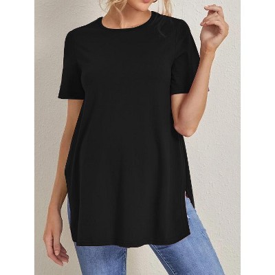 Women's Shirts Short Sleeve Tops Blouses Split Side Casual Crewneck Pregnant Tunic Tee