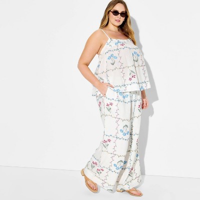 Women's Embroidered Wide Leg Pull-On Pants - Wild Fable™ White