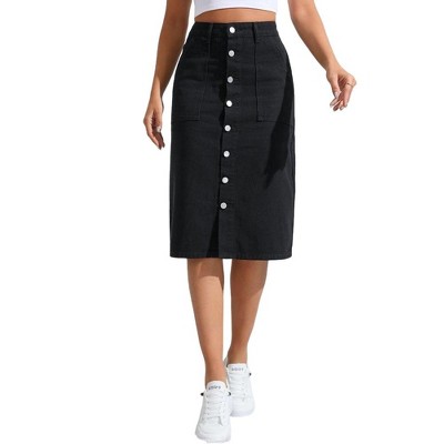 Garvee Womens Jean Skirts Denim Casual High Waisted Button Down Midi Denim Skirt with Slit