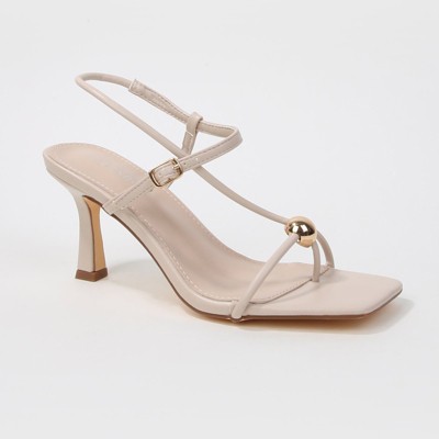Berness Women's Hisako Metallic Ball Detail Square Toe Stiletto Sandals