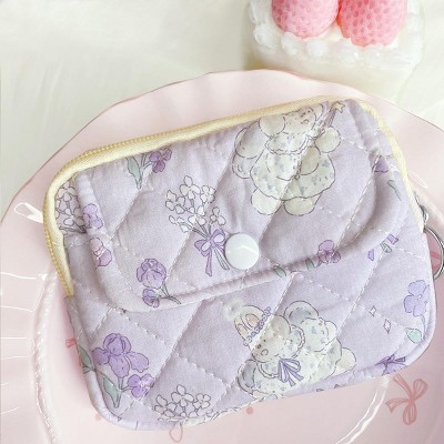 Narwey Cotton Quilted Floral Coin Pouch with Cute Prints Zipper for Women Girls (PURPLE BOUQUET)