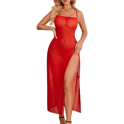 Avidlove Lingerie for Women Floral Print Mesh Babydoll Side Split Nightgown Long Nightdress