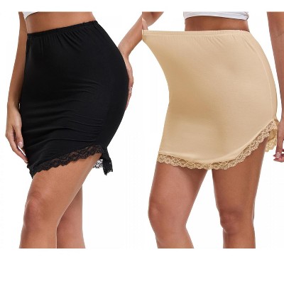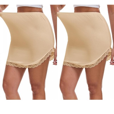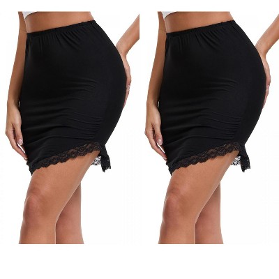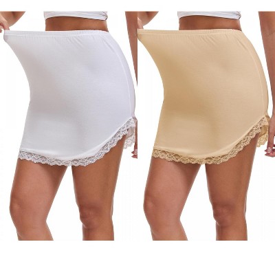 INSPIRE CHIC Women's Modal Curved Slit Lined Lace Trim Half Slip High Waist Underskirt 2 Packs