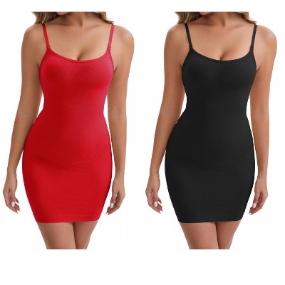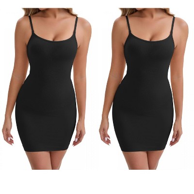 INSPIRE CHIC 3 Packs Women's Spaghetti Strap with Built-in Bra and Shorts Workout Side Slit Square Neck Full Slips
