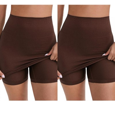 INSPIRE CHIC Women's Leggings Butt-Lifting Tummy Control High-Waisted Above Knee Tight Half Slip 2 Packs