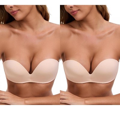 INSPIRE CHIC Women's Deep V Strapless Wireless Demi Bandeau Lace Thin on Top Thick on Bottom Push-Up Tube Bra 2 Packs