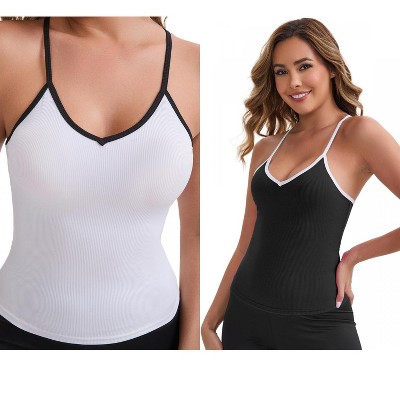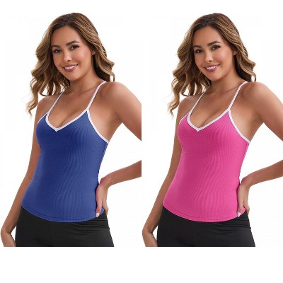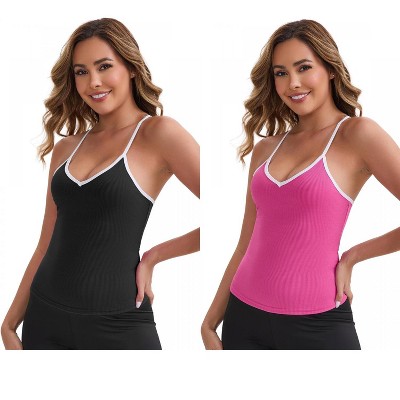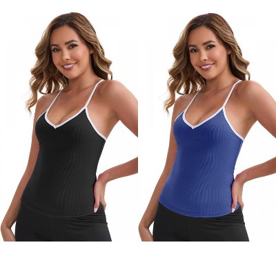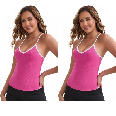 INSPIRE CHIC Women's V-Neck Spaghetti Straps Slim Fit Solid Elastic Athletic Camisoles 2 Packs