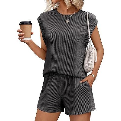 Ekouaer 2 Piece Set for Women Summer Casual Lounge Shorts Sets Cap Sleeve Sweatsuit Beach Vacation Outfits with Pocket