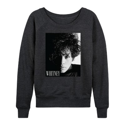 Women's - Whitney Houston - Face Portrait Lightweight French Terry Wide Neck Long Sleeve Graphic Shirt