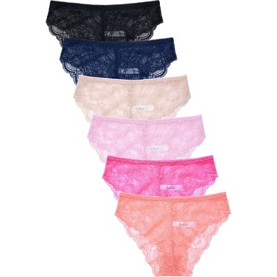 PACK OF 6 SOFRA OR MAMIA WOMEN'S STRETCH LACE NYLON BLEND HIGH CUT BIKINI PANTY (LP9046LK)