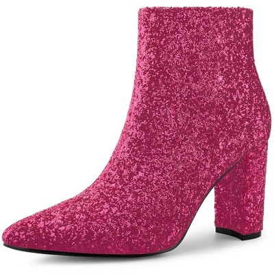 BLISSFUL STEP Women's Glitter Sparkle Pointed Toe Chunky Heel Ankle Booties