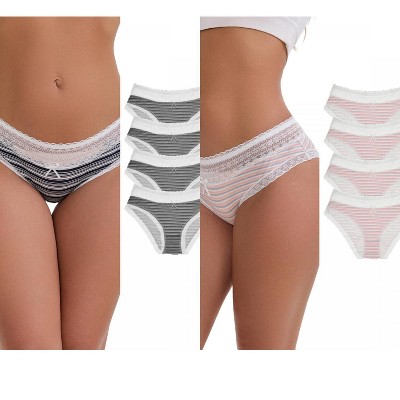INSPIRE CHIC Women's Mid-Rise Cotton Lace Trim Elastic Comfortable Striped Briefs 10 Packs